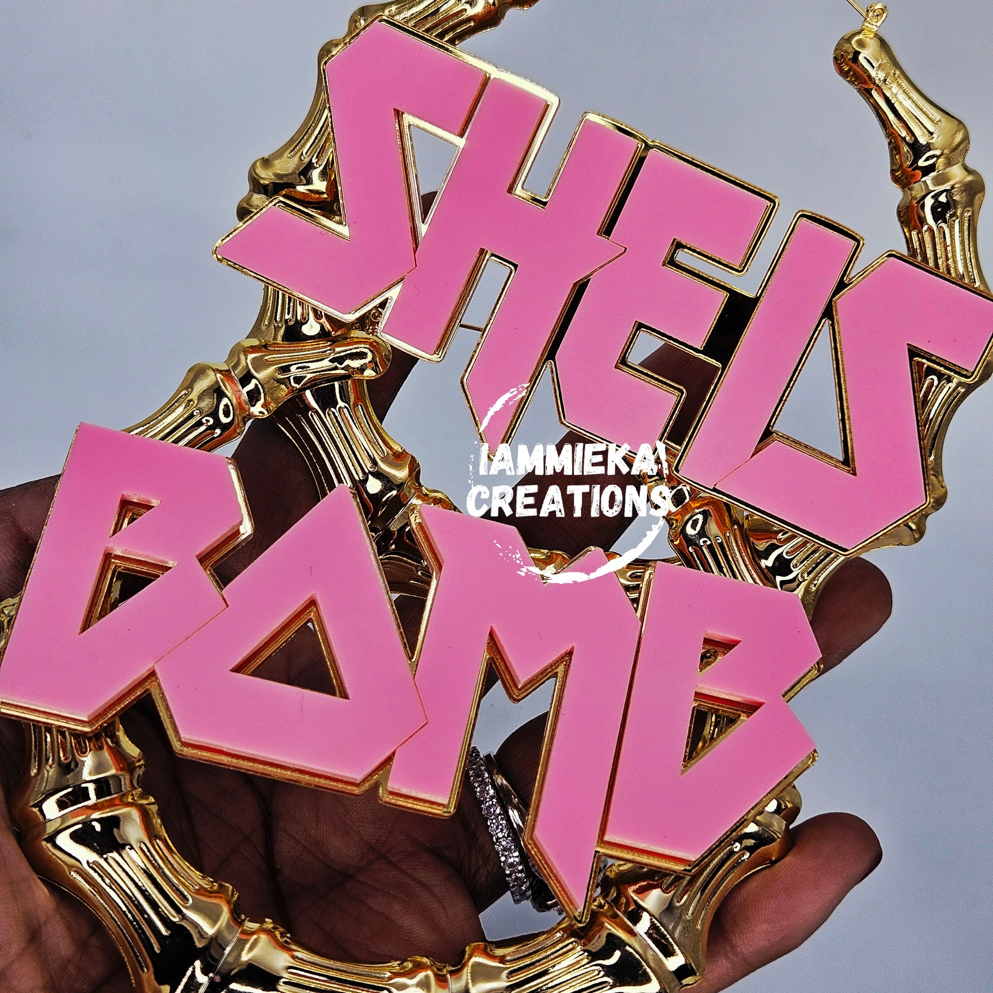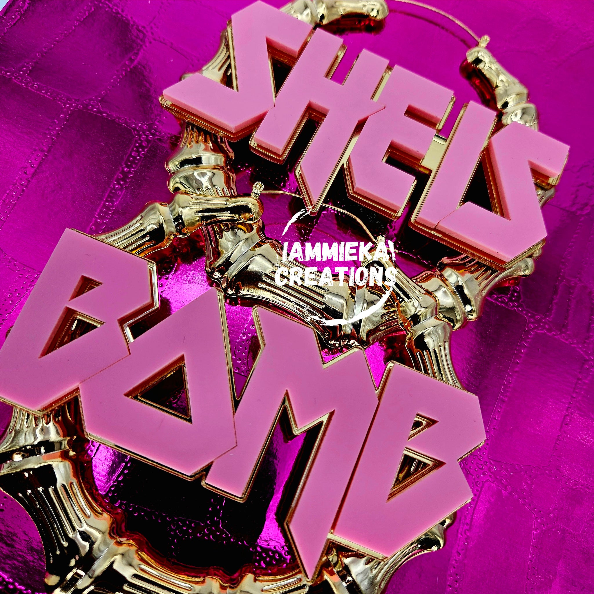 THIS IS WHEN YOU OHE ONE WORD ON INE EARRING AND SECOND WORD ON ANOTHER. EARRINGS ARE NICKEL FREE GOLD-PLATED. THE PART THAT GOES IN YOUR EARS IS 14k (REAL GOLD). NAME PLATE IS MADE OUT OF ACRYLIC. IF YOU TAKE CARE OF THEM, THEY WILL LAST FOR A LONG TIME.